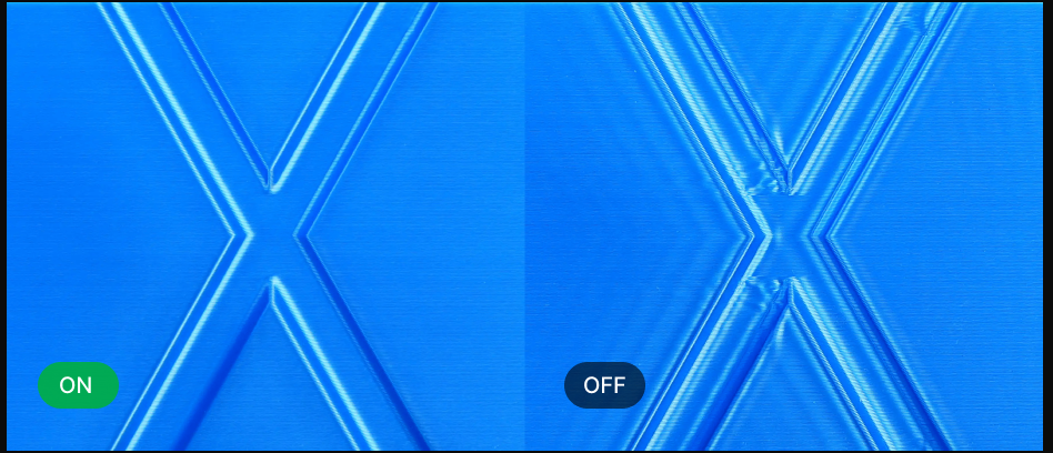 造形前に、押出システム全体の時間変化する非線形モデルを構築します。ノズル残留物、摩耗、フィラメントの水分量を自動で補正します。滑らかな表面と鋭いエッジが再現され、造形不良の発生を軽減します。