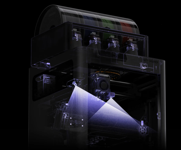 Bambu Lab X2Dは、Bambu Lab HシリーズのAIモニタリングアーキテクチャを搭載しています。31個のセンサーがフィラメント経路、造形、熱環境、機械の安全性など、機械全体を網羅し、あらゆる印刷工程をリアルタイムで監視します。