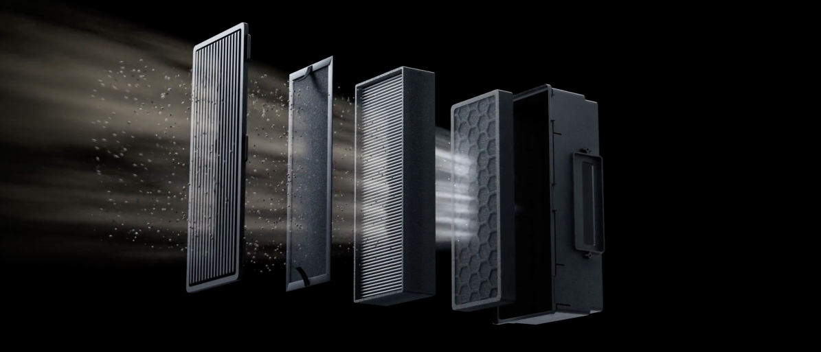 ココナッツ殻由来の活性炭層がVOC(揮発性有機化合物)や臭気を吸着し、HEPAフィルターだけでは除去できない加熱フィラメントの化学副生成物に対処します。