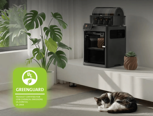 Bambu PLA BasicおよびPETG Basicを使用した室内空気質認証取得済み。低粒子状物質および低VOC排出量が確認されており、個人の作業スペースや居住環境に適しています。