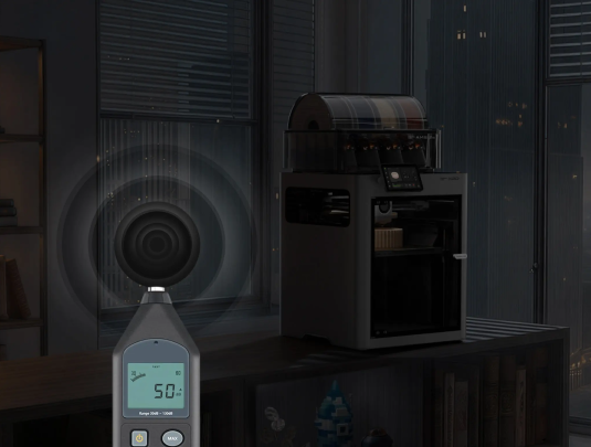アクティブモーターノイズキャンセリングとノイズ最適化されたエアダクトにより、Bambu Lab X2Dはサイレントモードで50dB以下に抑えられ、夜間の造形にも十分な静音性を実現しています。