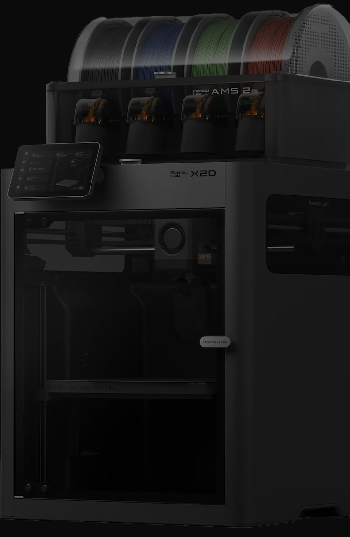 The Bambu Lab X2D は、X1 Carbonの後継機種であり、デュアルノズル押出方式、インテリジェント制御のサーマルチャンバー、そしてBambu LabのHシリーズプリンターから継承したAIモニタリングアルゴリズムを搭載し、新たな基準を打ち立てた第2世代フラッグシップモデルです。その結果、これまでにないレベルの統合性を備えながら、エンジニアリンググレードのマルチマテリアル印刷が可能な、コンパクトでプロシューマーにも手の届きやすいマシンが実現しました。