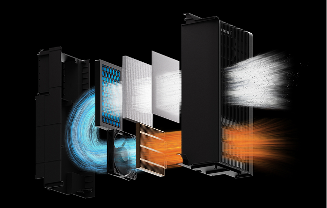 3段構造のフィルターを採用することにより、空気中のVOCと粒子を軽減するため、作業場やオフィスの開けた場所でも安全に使用できるようになります。