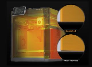 X1Eは、チャンバー温度を積極的に加熱・調整することができます。正確に制御されたチャンバー温度(最高60°Cまたは140°F)は、特にABSやPCのような反りやすいフィラメントの印刷品質を向上させます。
