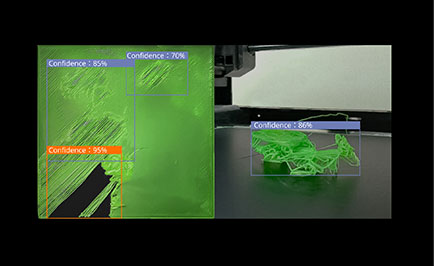 X1EのAIアルゴリズムは、レーザー光で測定するライダーとコンピューターにより、ファーストレイヤーの欠陥やスパゲッティ現象を検出することができます。また致命的な失敗が見つかった際、自動的に印刷を一時停止します。