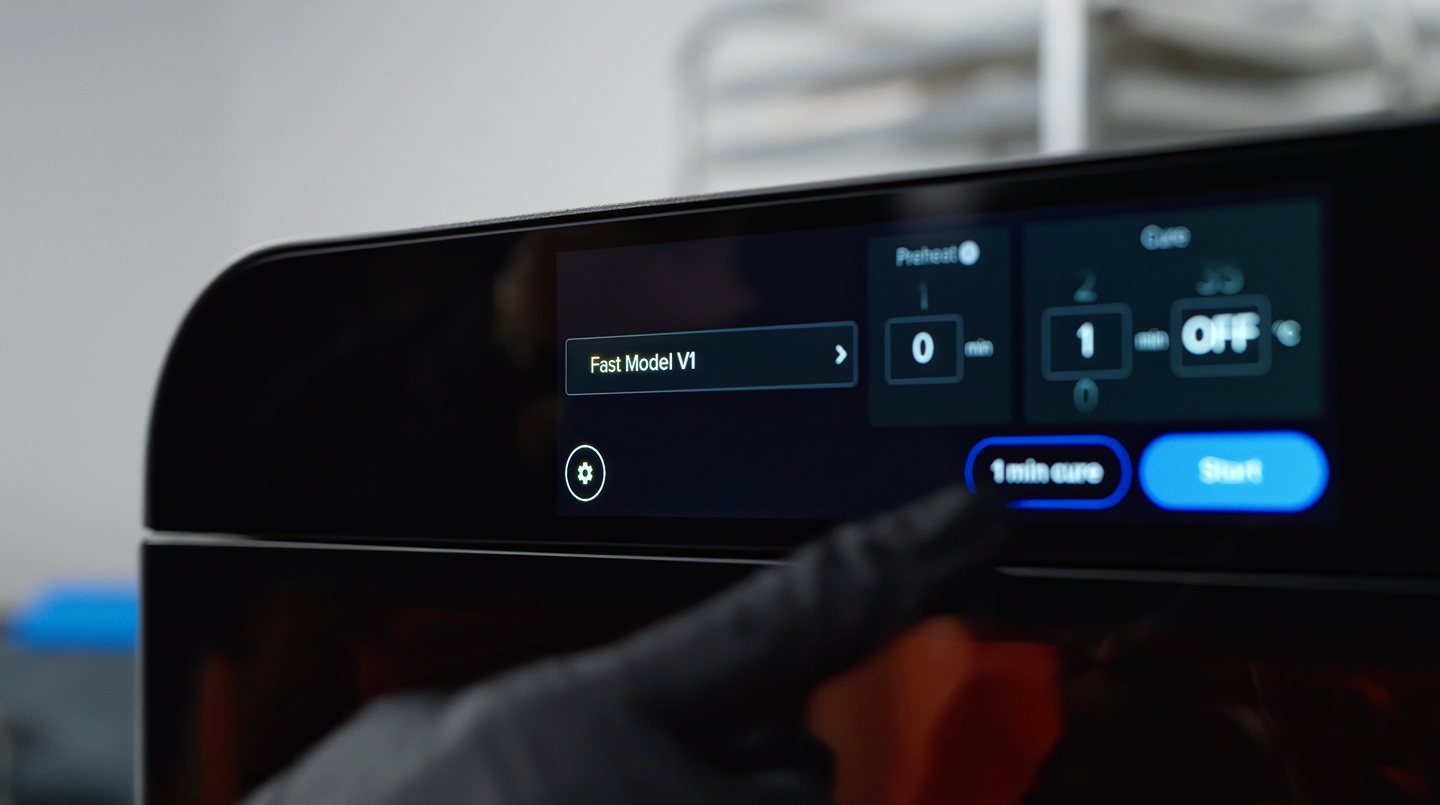 大容量の硬化処理が最短わずか1分ほどで完了。3Dプリントの生産性が上がり1日当たりに完成するパーツの量を最大化します。