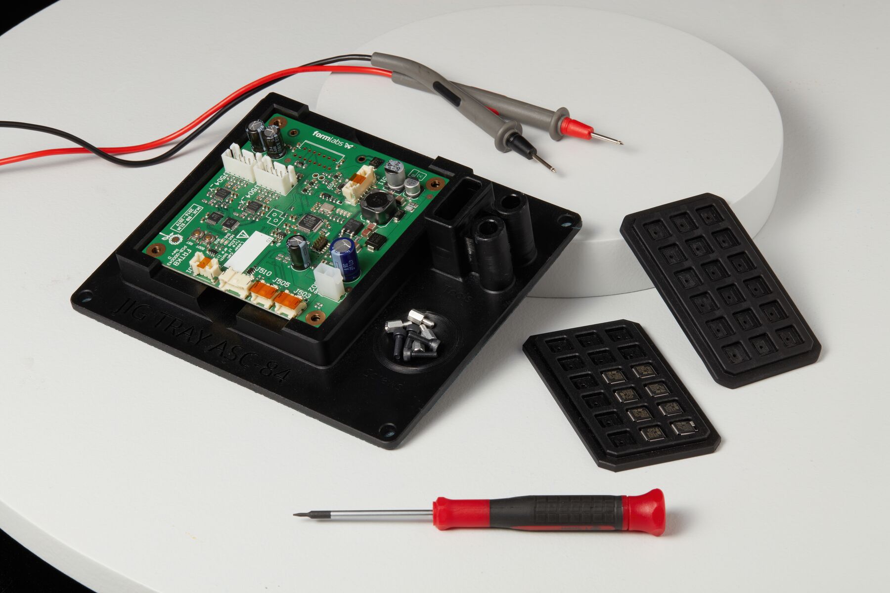 ESDレジンは、電子機器製造ワークフローの試作と検証、埃や粉を寄せ付けない静電散逸性パーツのプリント、敏感な電子機器を静電気から保護する筐体製作に使用できます。