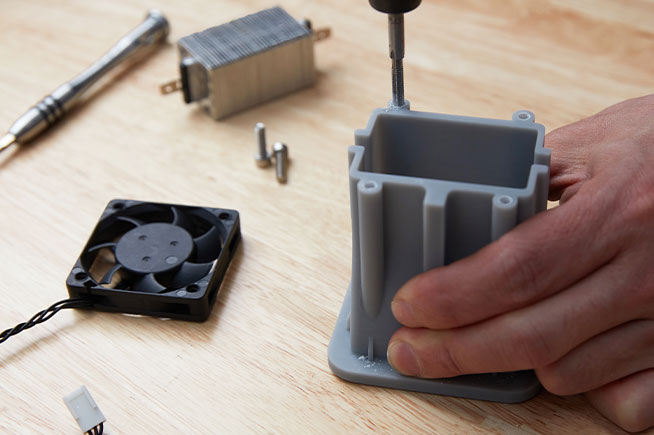 2.9GPaの弾性率を持ち、タッピング、トリミング、穴あけなど加工後の工程に対応できる、剛性が高く機能的な部品が造形できます。
