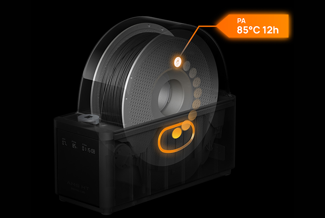 AMS HT は RFID を使用して公式 Bambu フィラメントの乾燥設定を自動的に一致させるため、手動入力は必要ありません。
