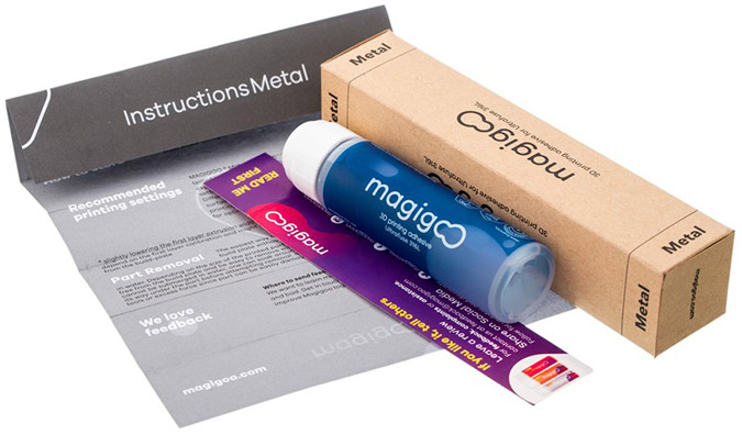 Magigooメタルは、BASF Ultrafuse®316Lを使用したプロ仕様の第1層接着剤として設計されています。本商品は、無害、不燃性であり、BASF Ultrafuse®316Lの後処理段階での使用も承認されています。Magigoo メタルを使用すると、ビルドプレートから完成パーツを簡単に取り外すことができます。