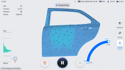 Ideal for larger areas, this mode offers marker-free and high-efficiency scanning with invisible, eye-safe infrared light. It’s less sensitive to ambient light, making it perfect for outdoor use.