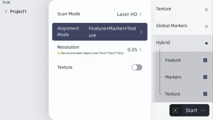 Combine feature, texture, and marker alignment modes freely to create hybrid solutions for diverse scanning needs.