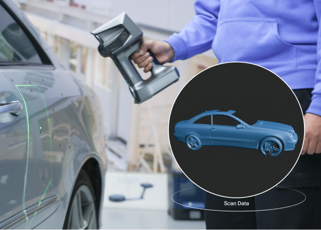 EinScan Libre's validated scale bar for calibration can also be integrated with photogrammetry technology to verify markers in real time, improving overall accuracy for large object scans.