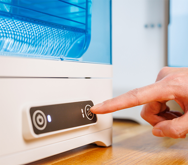 透明な照明付き容器のため、PVAの除去プロセスを簡単に確認することができます。そのため、パーツの準備が整ったことを確認することができます。また、飽和度インジケーターにより、水の交換時期がわかります。