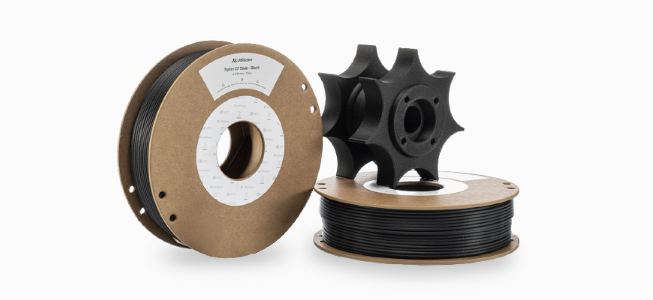 Ultimaker Nylon CF スライドは、安定した造形と寸法精度を確保しながら、強度、剛性、耐摩耗性に優れた部品を製造するのに最適です。
